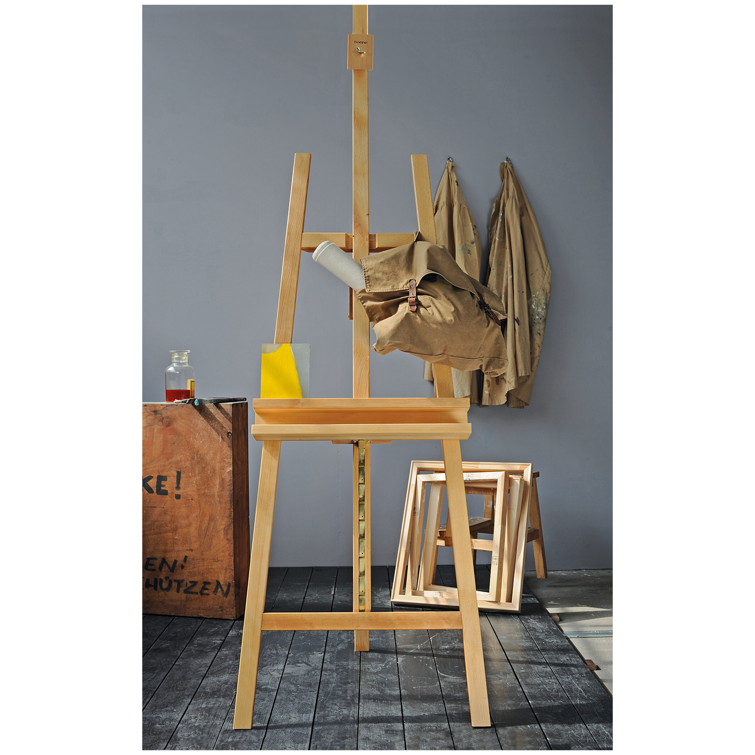 Af massivt bøgetræ, gennemvædet med linolie. Vores klassiker blandt staffelier! Det meget solide, trebenede og snedkerfremstillede Akademistaffeli ligger malegrunden nu plant på alle tre lister (yderlister og mellemliste), hvilket sikrer...