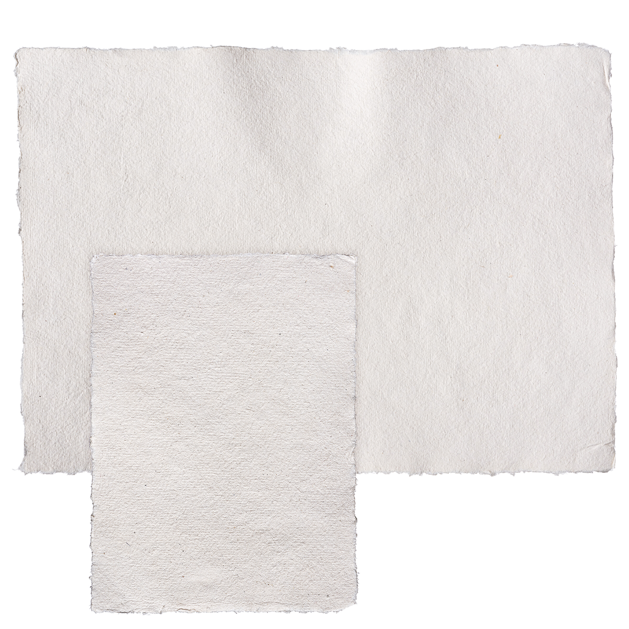 Fremstillet af 100 % bomuld. Levende, ujævn struktur. 4-sidet bøttekant. Fremstillet i hånden direkte fra bøtten, arkene rives i våd tilstand.