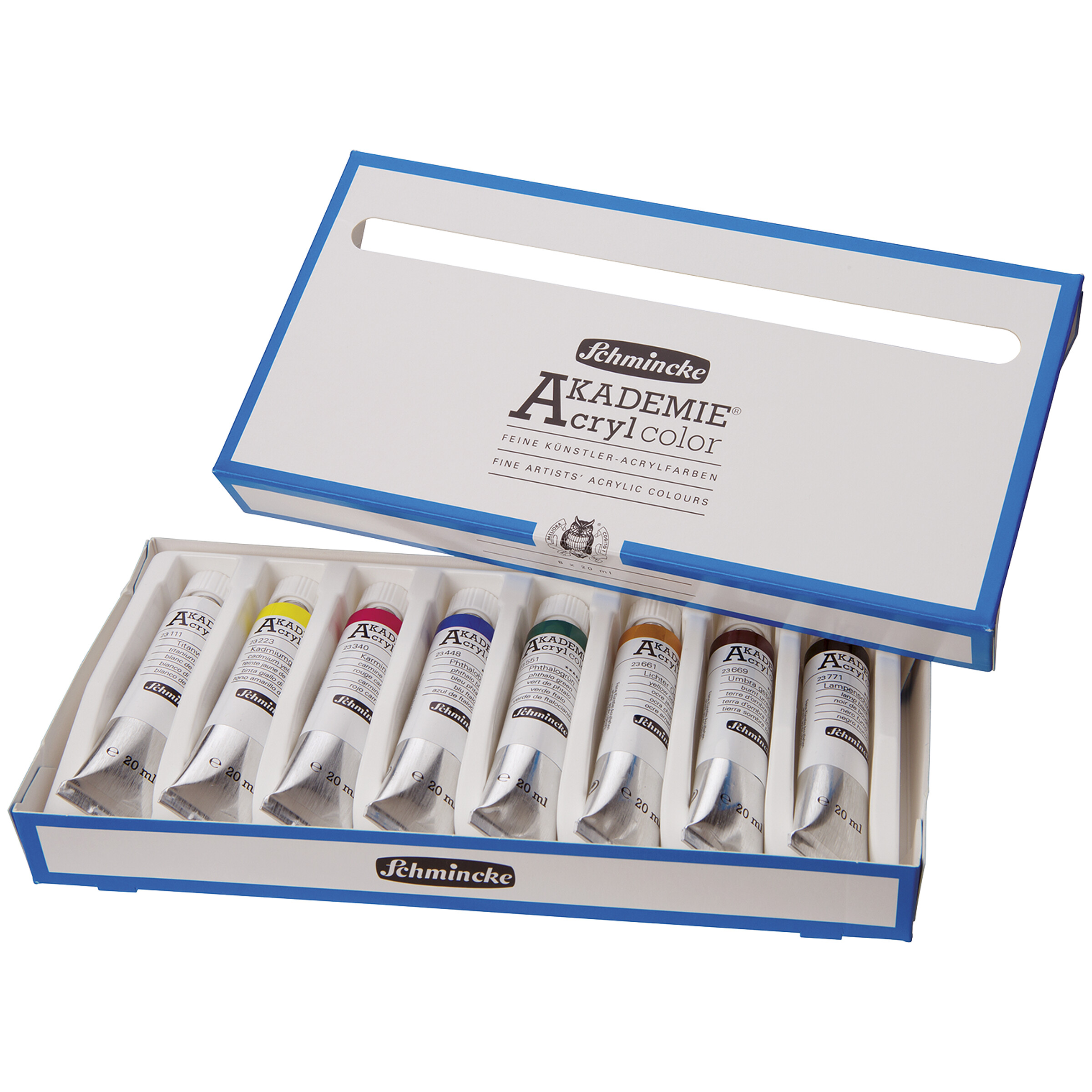 Til alle brillante, farvestærke og lysægte toner inden for det koloristisk krævende sortiment anvendes kvalitetsstærke kunstner-pigmenter i høj koncentration. Akrylfarve med let pastos karakter, skinner let i tørret tilstand. Akademie®...
