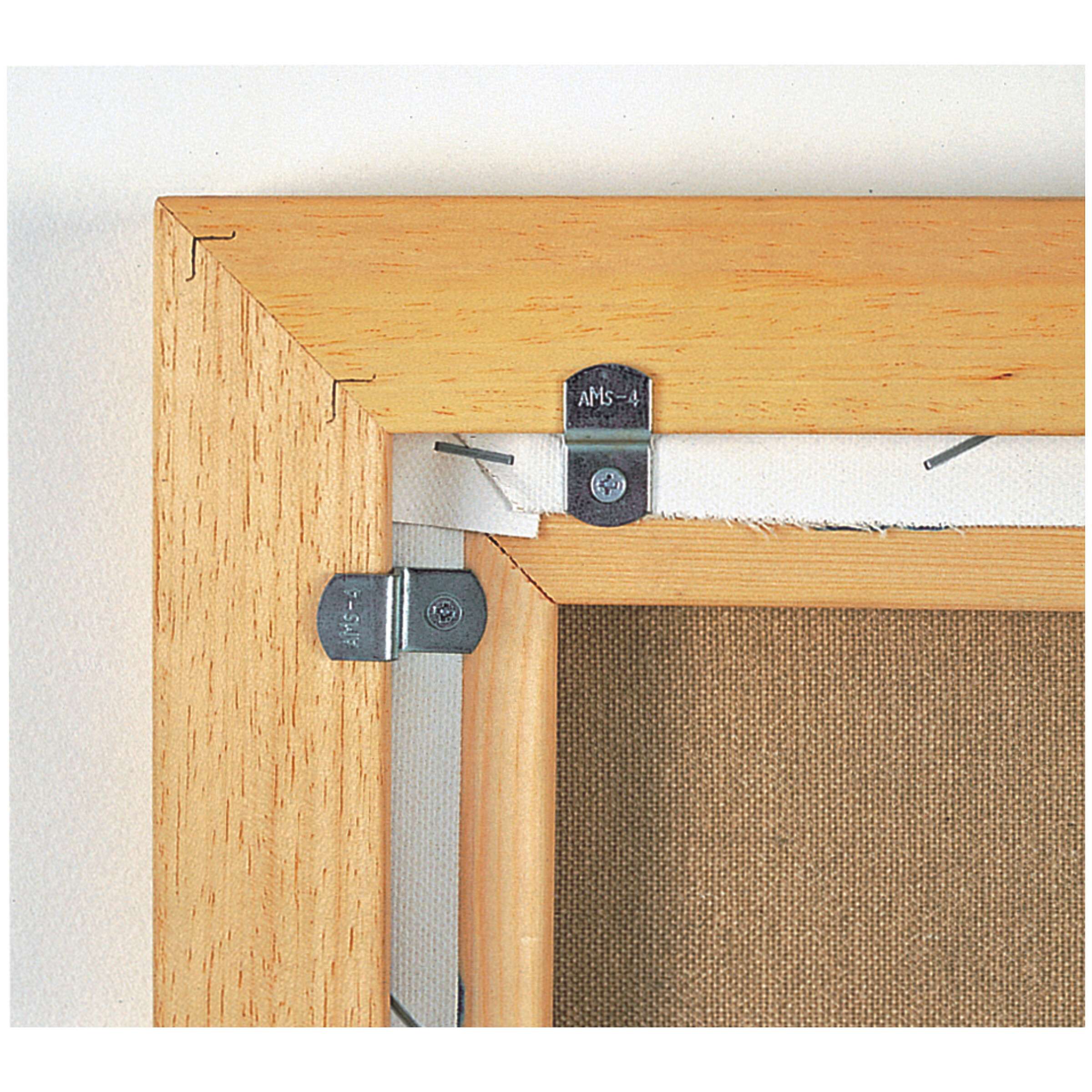 Til fastgørelse af blindrammen i billedrammen. Forzinket stål, inkl. passende skruer (Ø 3,5 mm, længde 9 mm). Størrelsesangivelsen refererer til afstanden mellem de to ben.