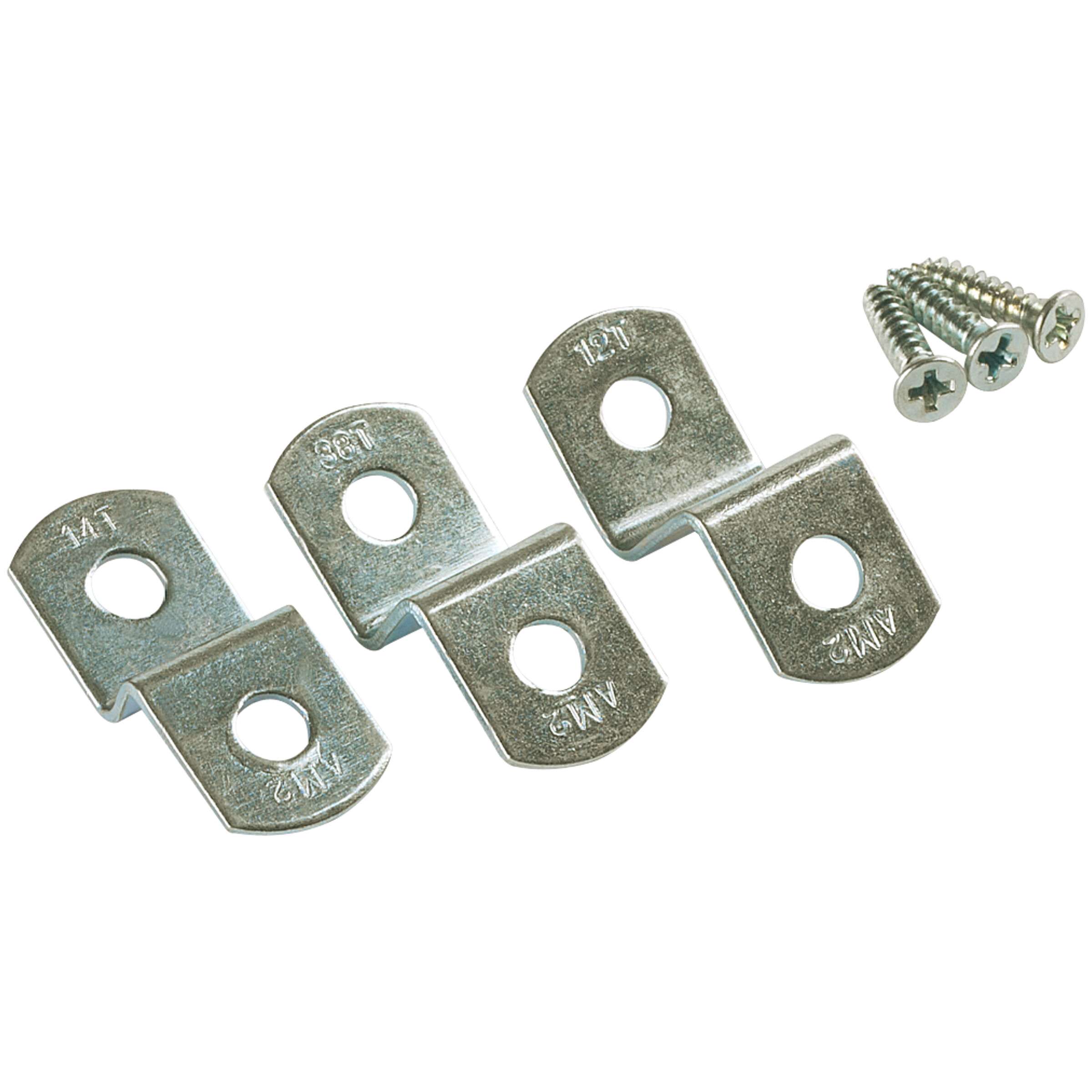 MereTil fastgørelse af blindrammen i billedrammen. Forzinket stål, inkl. passende skruer (Ø 3,5 mm, længde 9 mm). Størrelsesangivelsen refererer til afstanden mellem de to ben.
