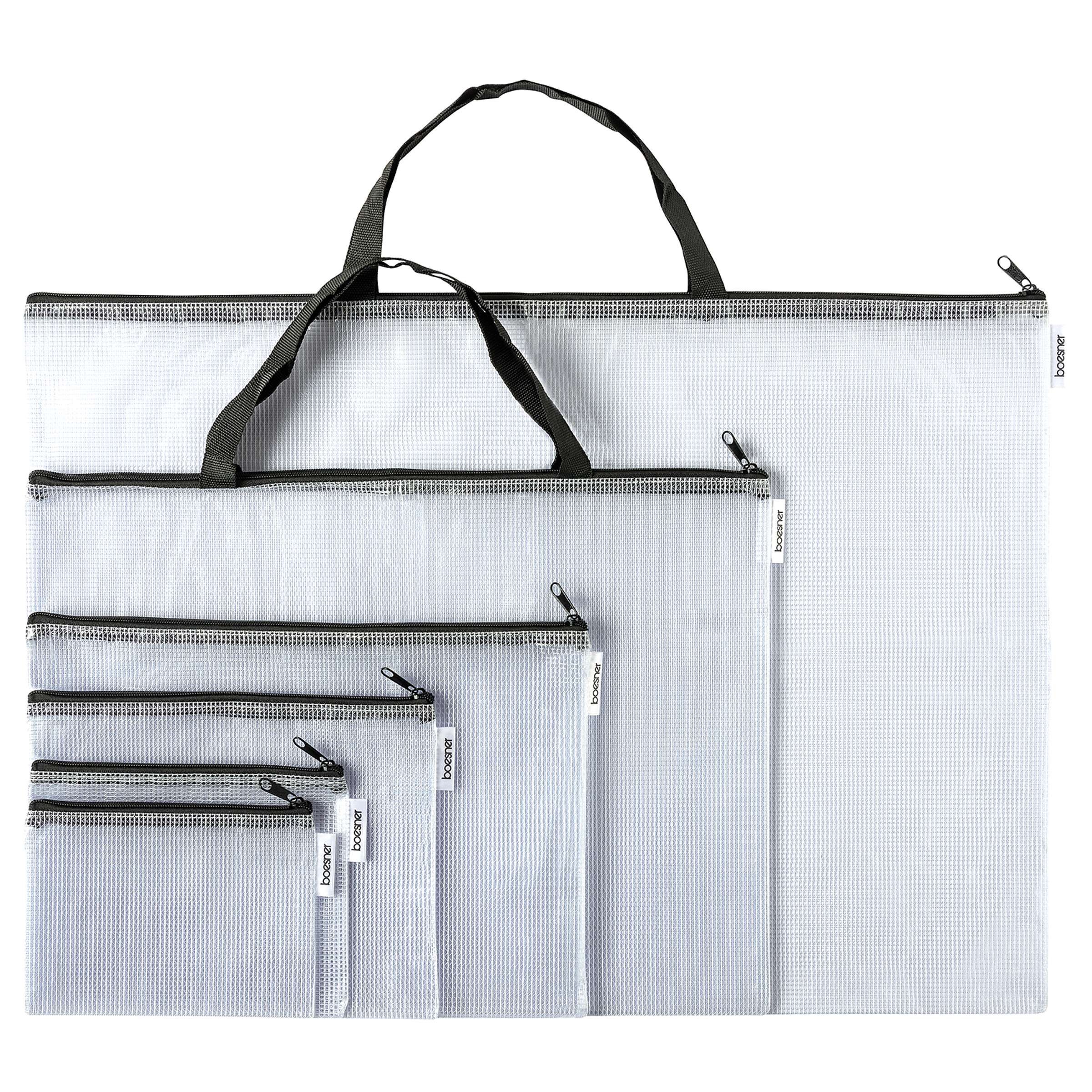 Praktisk transport- og opbevaringstaske af transparent PVC-folie, der er forstærket med netmateriale. I den vandfaste taske med lynlås kan du opbevare redskaber, tegninger, billeder, skitser etc. synligt og så du hurtigt kan få fat i dem og godt beskyttet.