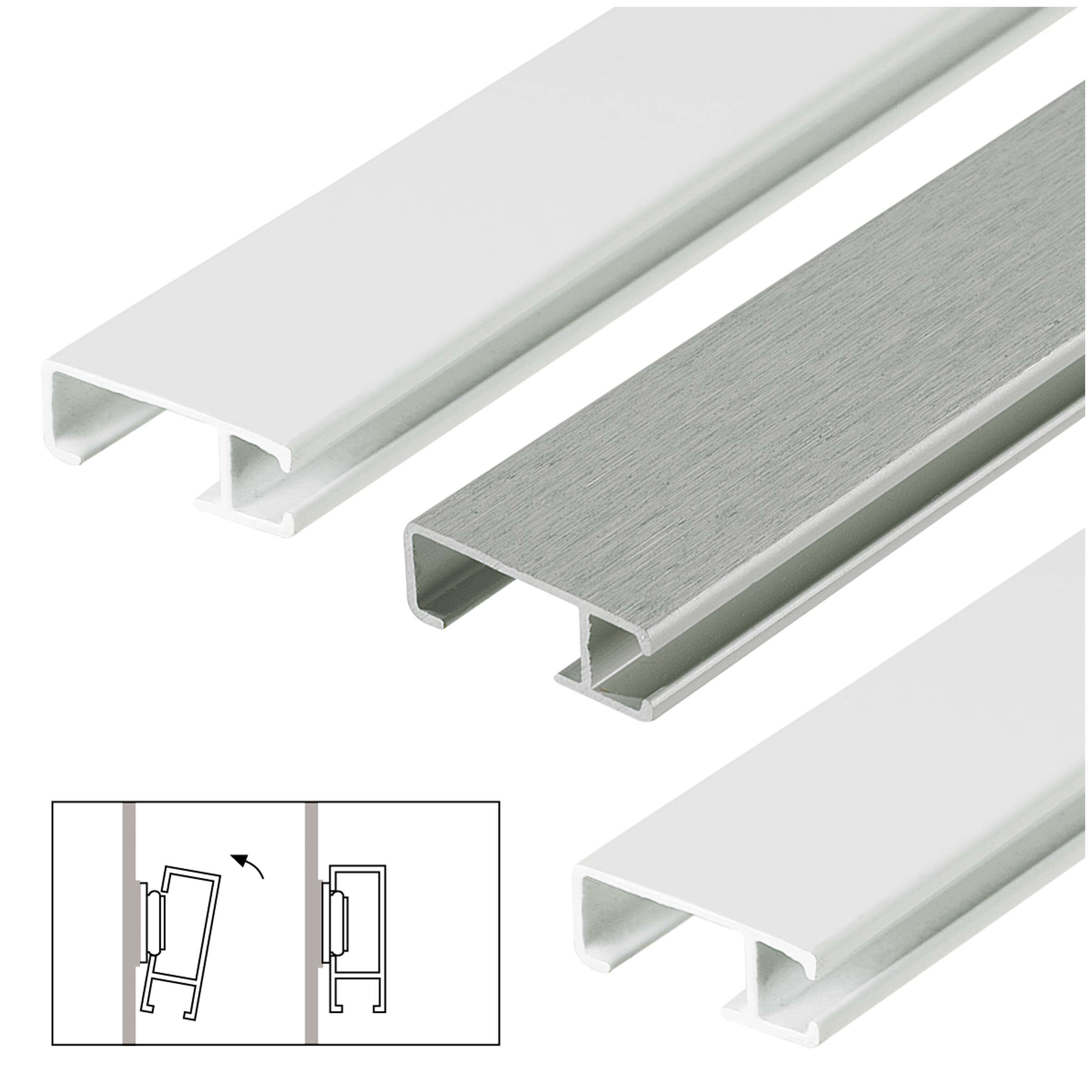 Elegant præsentation af billeder, nemt at udskifte eller at ændre fra vandret til lodret ophængning - nu hurtigt og enkelt. boesner-galleriskinner i stabil aluminiumsprofil (højde 22,5 mm, dybde 8 mm) gør det enkelt og hurtigt. Du skal bare skrue clipsene på, clipse skinnen ind, færdig! Dette eliminerer behovet for efterfølgende boringer og huller ved billedophængning. I den hvide, primede version kan galleriskinnen påføres akryl-, dispersions- og latexmaling og dermed tilpasses omgivelserne perfekt.